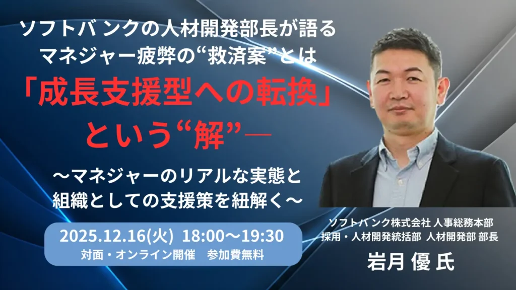 2025.11.19 【ソフトバンク様との共同セミナーのお知らせ】ソフトバンク 人材開発部 部長 岩月氏が語るマネージャー疲弊の”救済案”とは? お知らせ Post Share Hatena Pocket RSS feedly Pin it ▼詳細はこちらhttps://prtimes.jp/main/html/rd/p/000000049.000040945.html Post Share Hatena Pocket RSS feedly Pin it リデザインワーク社と弊社代表 森川とのコラボセミナー(11/12)のお知らせ 前の記事 【(株)給与アップ研究所とのコラボセミナーのお知らせ】評価制度改革と1on1の実践法 次の記事